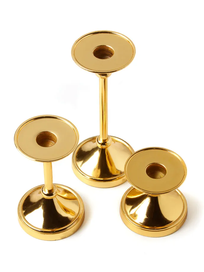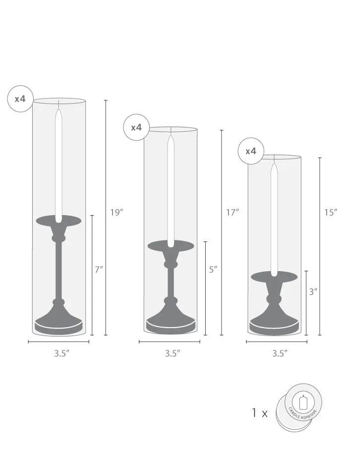 Includes: (3) Gold Taper Holders, (3) Glass Chimneys, *(3) Candles